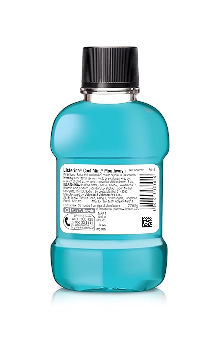Listerine Cool Mint 80ml provides a quick and effective solution for freshening your breath and promoting oral hygiene. Its powerful antiseptic formula kills germs that cause bad breath, plaque, and gum problems, leaving your mouth feeling refreshed and clean. The refreshing cool mint flavor provides a long-lasting fresh breath experience. Compact and portable, this 80ml bottle is ideal for travel or for those who need a convenient, on-the-go solution for maintaining oral health.