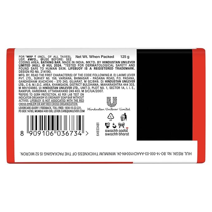 The Lifebuoy Vitamins Soap 125g (4-in-1) is designed to provide comprehensive care for your skin. This soap combines the benefits of four essential elements:? Germ Protection: Offers protection against a wide range of germs, helping to keep you and your family safe.? Moisturization: Enriched with moisturizing agents to keep your skin soft and hydrated.? Vitamins: Infused with vitamins that nourish and revitalize the skin. Freshness: Provides a refreshing fragrance that lasts throughout the day.