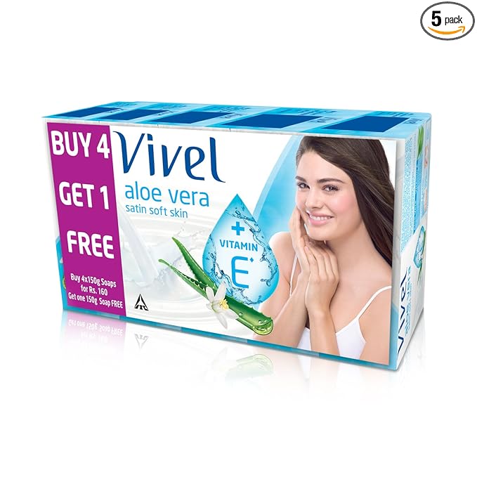 Vivel Aloe Vera Soap 5 Bars Pack (100g) is enriched with the natural goodness of aloe vera and vitamin E to nourish and moisturize your skin deeply. Its gentle formula helps keep the skin soft, smooth, and refreshed after every wash. With a soothing fragrance and hydrating care, this soap is ideal for everyday use and suitable for all skin types.