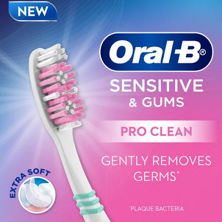 The Oral-B Sensitive & Gums Pro Clean 4-in-1 Toothbrush is expertly designed to provide a gentle yet effective cleaning experience for sensitive teeth and gums. Its ultra-soft bristles clean without irritating the gums, effectively removing plaque and reducing gum sensitivity. The 4-in-1 design includes a tongue cleaner, a gum massager, and an ergonomic handle for better grip and control. Ideal for daily use, this toothbrush promotes healthier gums and a fresher mouth while maintaining a gentle touch on sensitive teeth.
