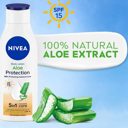Nivea Aloe Protection 200ml is a refreshing body lotion that provides long-lasting hydration while protecting your skin from dryness. Infused with aloe vera, known for its soothing and calming properties, this lotion instantly absorbs into the skin, leaving it feeling smooth, soft, and nourished. Its non-greasy formula offers deep moisture, providing your skin with a refreshing and protective shield throughout the day. Ideal for daily use, Nivea Aloe Protection helps maintain the skin's moisture balance, giving you healthy-looking, supple, and well-hydrated skin.
