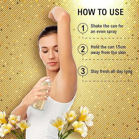 Usage Instructions: Hold the can 15 cm away from the body and spray evenly. Storage: Store in a cool, dry place away from direct sunlight and sources of heat. Caution: Avoid spraying near eyes or on broken or irritated skin. Keep Out of Reach of Children: Store away from children's reach to prevent accidental ingestion or misuse. Flammability: Contains flammable substances; do not expose to heat or open flame. Allergy Information: If you have sensitive skin or are prone to allergies, perform a patch test before full application.