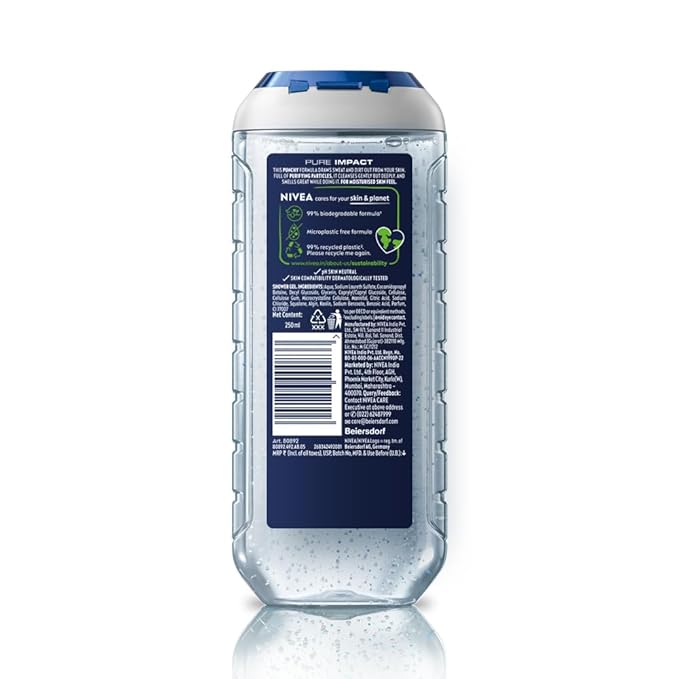 NIVEA MEN Pure Impact Shower Gel is a versatile grooming essential designed to cleanse, refresh, and invigorate. This 3-in-1 formula serves as a body wash, face cleanser, and shampoo, making it a convenient addition to your daily routine. Enriched with purifying minerals, it effectively removes dirt and impurities, leaving your skin and hair feeling deeply cleansed and revitalized.