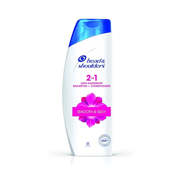 ?Experience the combined benefits of cleansing and conditioning with Head & Shoulders 2-in-1 Smooth & Silky Anti-Dandruff Shampoo + Conditioner in a convenient 72ml size. This dual-action formula effectively removes dandruff while providing 24-hour frizz control, leaving your hair sleek, shiny, and up to 100% flake-free with regular use. Its gentle, pH-balanced composition is suitable for daily use and safe for color-treated hair