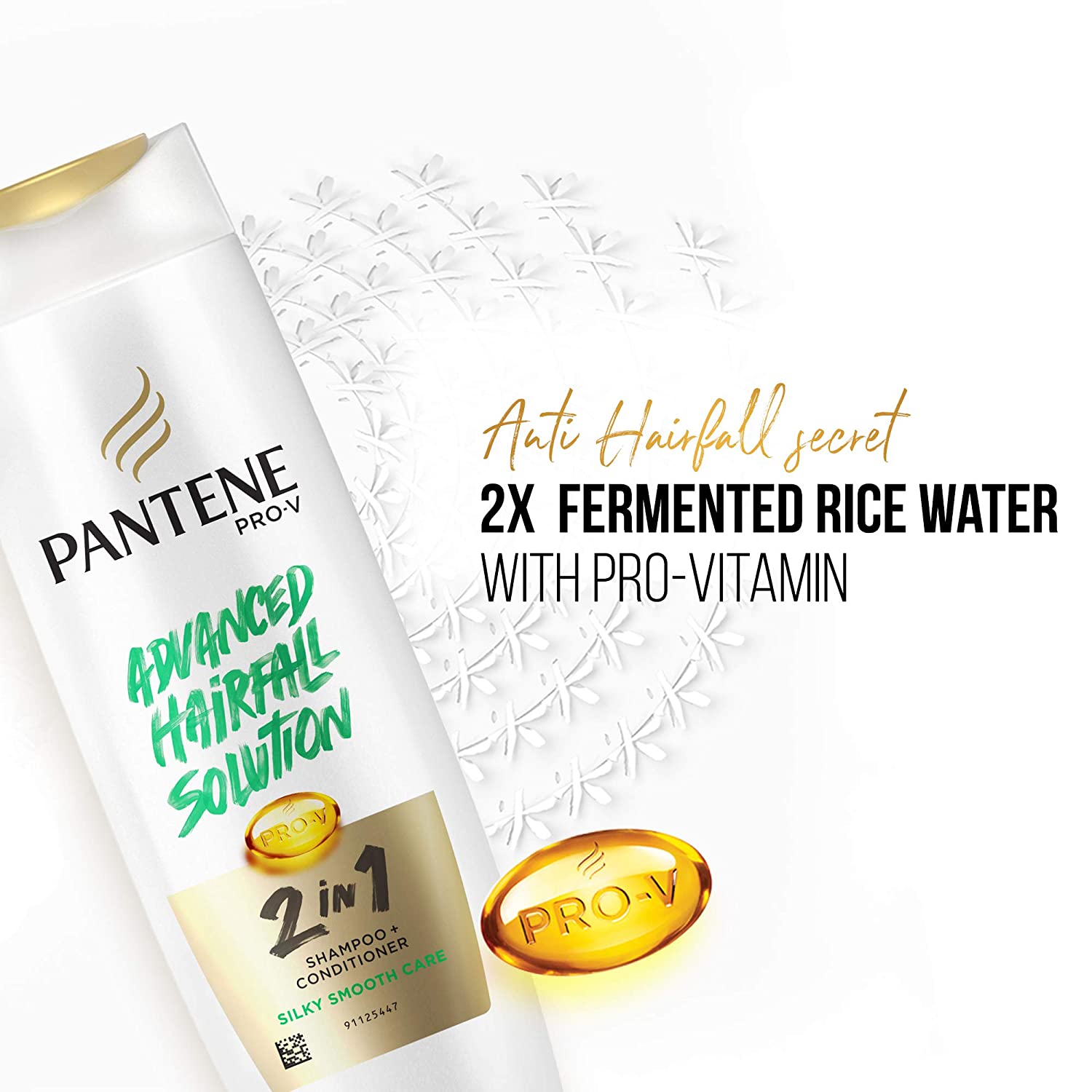 Achieve frizz-free, silky smooth hair with Pantene 2-in-1 Silky Smooth Care Shampoo + Conditioner. Formulated with Pro-V nutrients and fermented rice water, this innovative 2-in-1 formula cleanses and conditions your hair in one easy step. It helps reduce hair fall due to breakage, leaving your hair feeling nourished, manageable, and beautifully smooth.