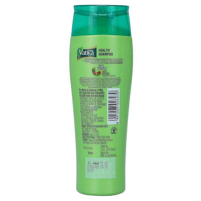 Nourish and revitalize your hair with the natural power of Henna and Amla in Dabur Vatika Health Shampoo. This enriching formula is designed to strengthen hair from root to tip, reduce hair fall, and promote healthy shine. Henna helps condition the hair naturally, while Amla, rich in Vitamin C, supports scalp health and strengthens hair strands.