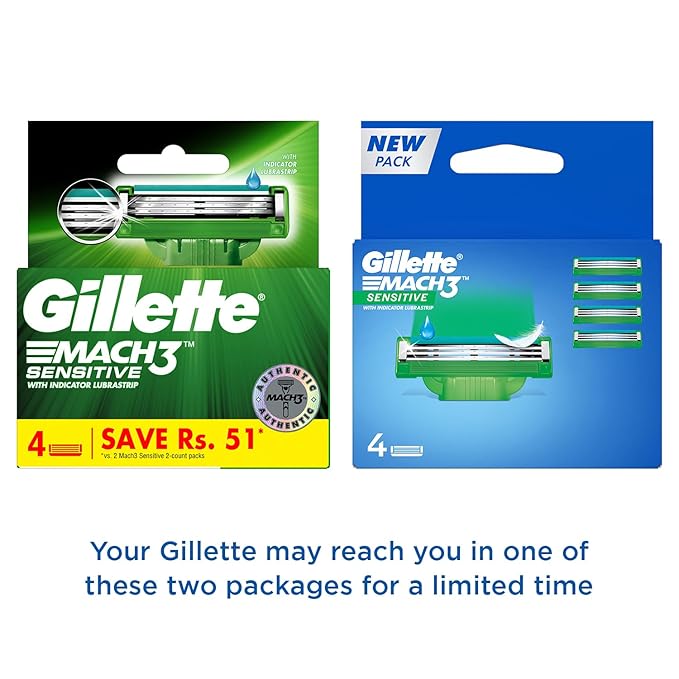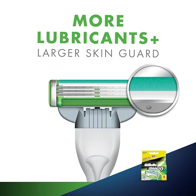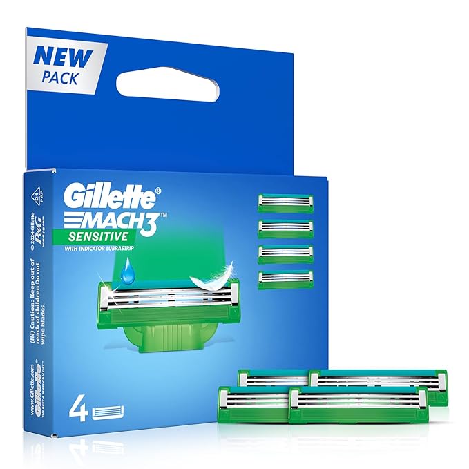 Gillette Mach3 Sensitive 4N Cartridges are designed for an ultra-smooth, irritation-free shave—perfect for sensitive skin. Each cartridge features 3 high-definition blades that cut hair easily with less tug and pull, while the enhanced Lubrastrip, enriched with Aloe Vera, provides a smooth glide to help protect your skin. The responsive blade suspension adjusts to facial contours, ensuring a comfortable shave every time. Compatible with all Mach3 handles, this pack of 4 refill cartridges keeps you stocked for weeks of close, clean shaves.