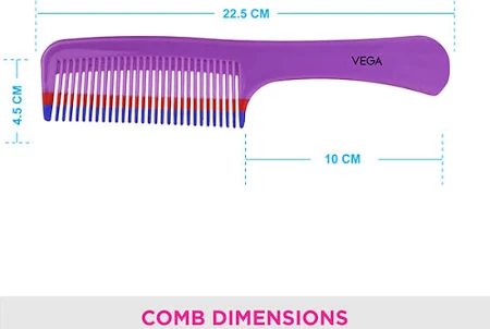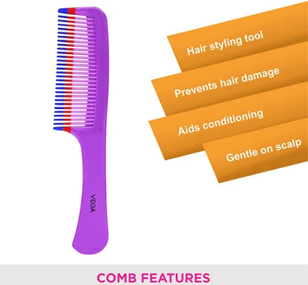 Vega regular combs are designed to groom, shape and detangle your hair. These combs have smooth rounded teeth that do not hurt your scalp while combing and help reduce hair fall. They are gentle on your scalp and ideal for everyday use.