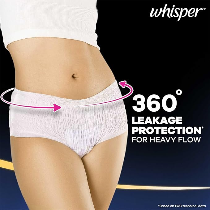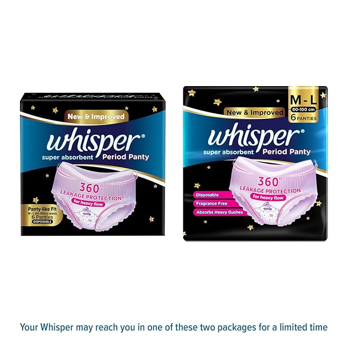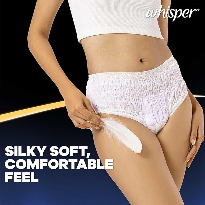 Whisper Ultra Soft Super Absorbent Period Panty (M-L) provides superior protection and comfort. Designed for heavy flow days, it offers up to 100% leak protection with a soft cottony feel for all-day comfort.