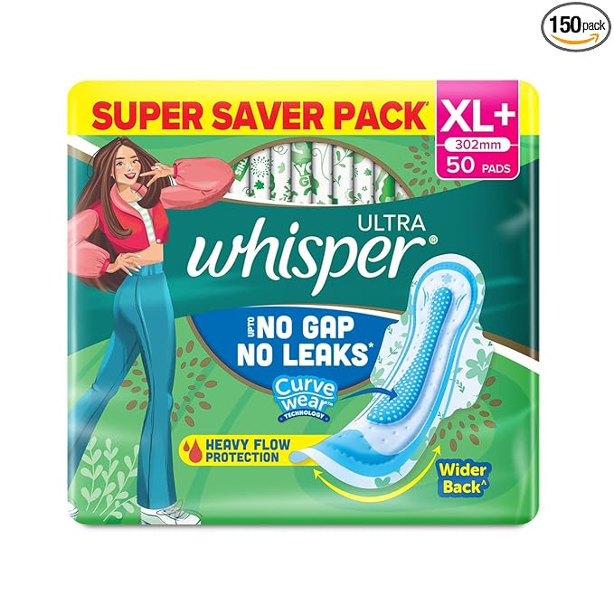 Stay fresh, confident, and protected all day with Whisper Hygiene + Comfort XL sanitary pads. Designed with extra length and wider backs, these pads offer superior coverage to help prevent leaks even on heavy flow days. The soft top cover is gentle on skin, while the absorbent core locks away wetness and odor for long-lasting comfort. Ideal for day and night use, each pad ensures a secure fit with wings for added protection and peace of mind.