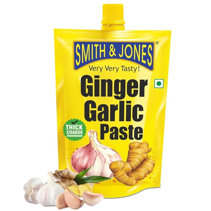 Smith & Jones Ginger Garlic Paste offers an aromatic culinary journey filled with rich flavours. Our manufacturing process ensures that every dollop embodies the essence of handpicked ginger and garlic,offering a delightful balance of strong,biting taste. Its thick and coarse texture sets it apart,elevating the mouthfeel of your dishes.