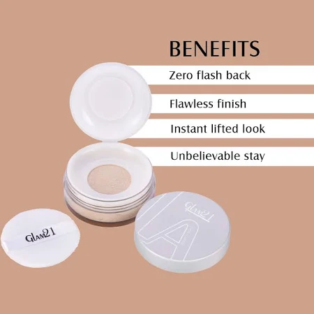 Glam21 La Loose Powder is a finely milled, lightweight setting powder designed to provide a flawless matte finish. Ideal for all skin types, this powder helps control shine, absorb excess oil, and set makeup in place throughout the day. Its sheer formula ensures a natural look without flashback, making it suitable for both everyday wear and special occasions.