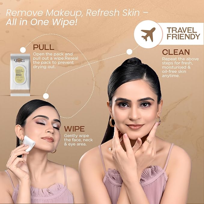 Effortlessly cleanse and refresh your skin with Glam 21 Make Up Remover Wipes Classic. These soft, ultra-gentle wipes are designed to remove makeup, dirt, and impurities in a single swipe, leaving your skin feeling fresh and clean. Enriched with a hydrating formula, they gently cleanse without stripping the skin’s natural moisture, making them perfect for everyday use. Compact and convenient, these wipes are a must-have for on-the-go makeup removal, ensuring your skin stays smooth and refreshed anytime, anywhere.