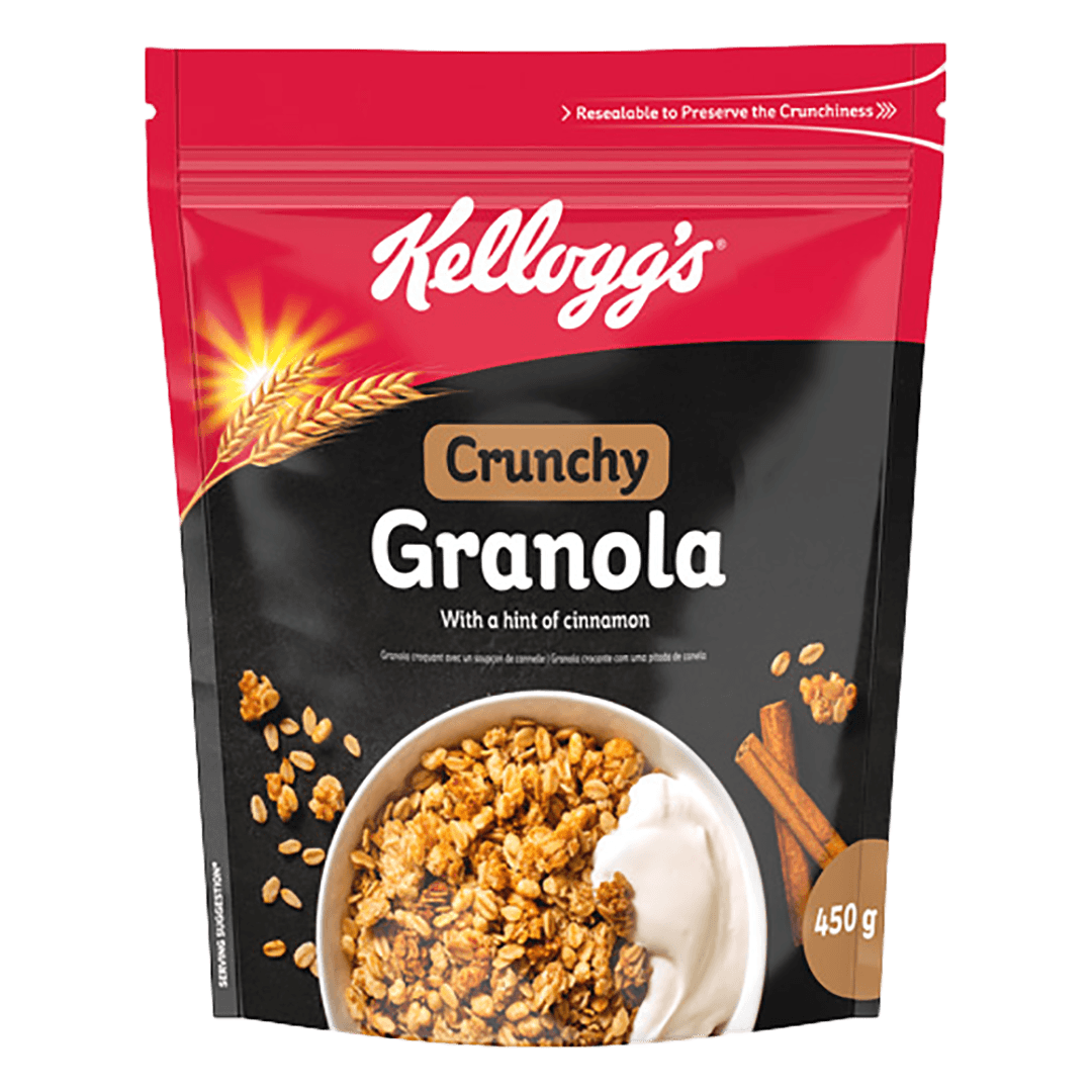 Kellogg's Crunchy Granola is a wholesome and delicious multigrain breakfast cereal that combines the goodness of oats, wheat, rice, and corn. Each bite offers a crunchy texture and is generously loaded with real fruits, nuts, and seeds, providing a nutritious start to your day. Whether enjoyed with milk, yogurt, or as a standalone snack, it's a convenient and tasty option for busy mornings.
