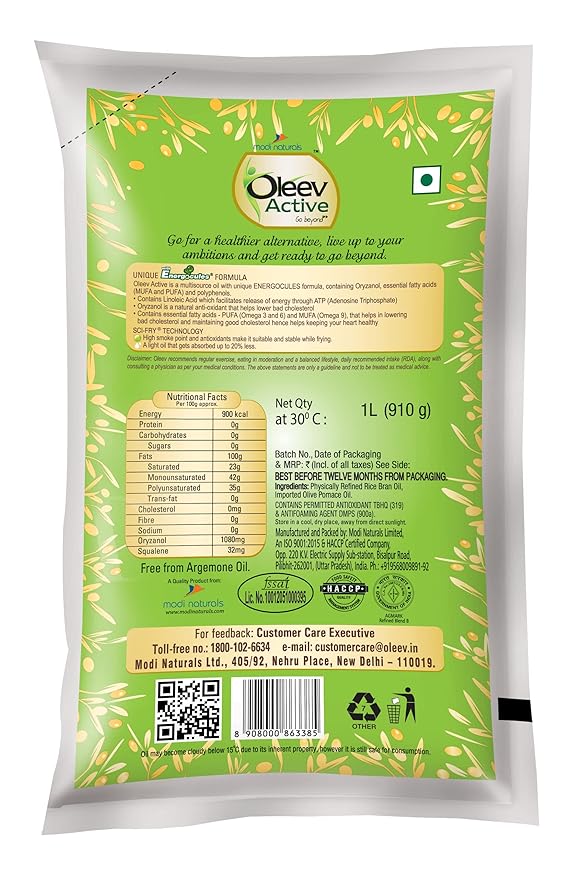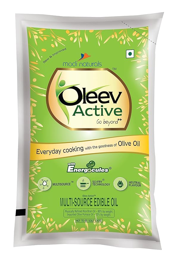 The ultimate oil for everyday cooking, Oleev Active is a unique blend of Olive and Rice Bran oil that is especially fitted for the modern kitchen, the oil ensures an active and healthy lifestyle everyday making you energized and refreshed all day every day, 20% less absorption, making food lighter, healthier and tastier, well-suited for deep-frying due to its extremely high smoke point, helps curb gastrointestinal problems, rich in Oryzanol, the oil has high antioxidant properties.