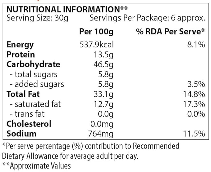 Store in a cool, dry place away from direct sunlight. Once opened, keep the packet tightly sealed to maintain freshness. This product may contain allergens such as peanuts, gluten, and tree nuts. Please refer to the packaging for the most accurate and updated ingredient and allergen information. Consume responsibly as part of a balanced diet.