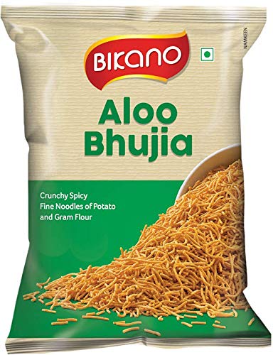 BIKANO Aloo Bhujia 250g is a spicy, crunchy Indian snack made from potato, gram flour (besan), and a blend of aromatic spices. It is a popular namkeen enjoyed with tea or as a tasty topping for chaat dishes and salads.