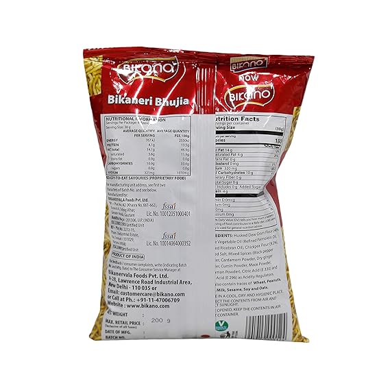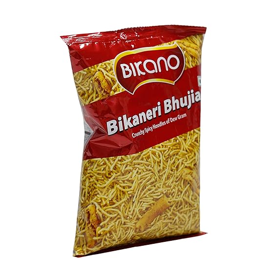 BIKANO Bikaneri Bhujia 200 GM is a traditional Indian snack crafted from a fine blend of moth flour (matki) and besan (gram flour), seasoned with a unique mix of spices. Originating from Bikaner, this crunchy and flavorful bhujia is known for its spicy kick and crispy texture, making it a popular choice for snacking or serving with meals.