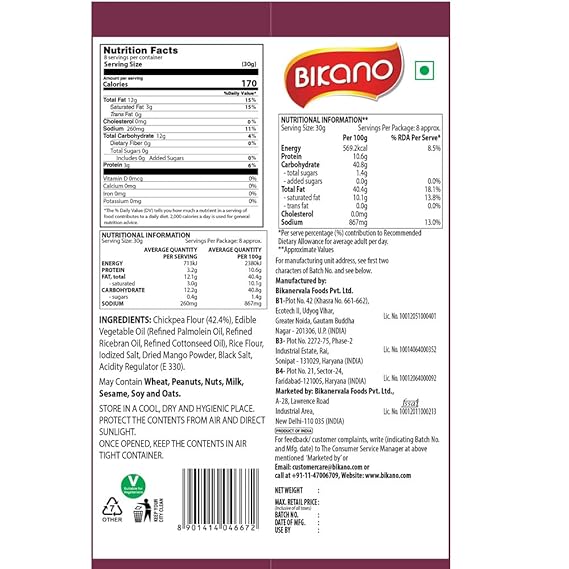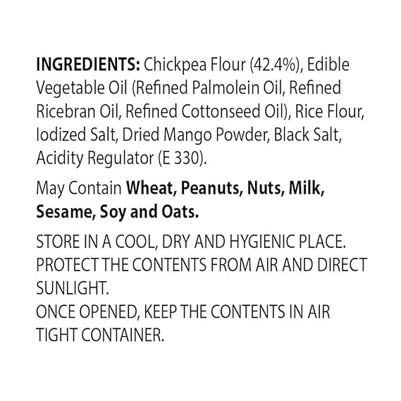 Contains chickpea flour and may contain traces of gluten, peanuts, tree nuts, and sesame. Made in a facility that processes multiple allergens. Store in a cool, dry place away from direct sunlight. Once opened, transfer to an airtight container for optimal freshness. Always check product packaging for the most accurate ingredient, allergen, and nutritional details.