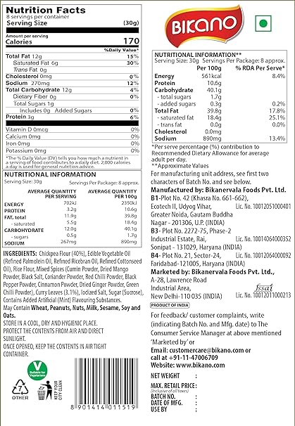 BIKANO Boondi Pudina 200G is a refreshing twist on the traditional boondi snack. Made from quality chickpea flour and delicately seasoned with aromatic pudina (mint) and spices, this crunchy treat offers a burst of flavor. Ideal for snacking, enhancing chaats, or spicing up raitas with a minty zing.