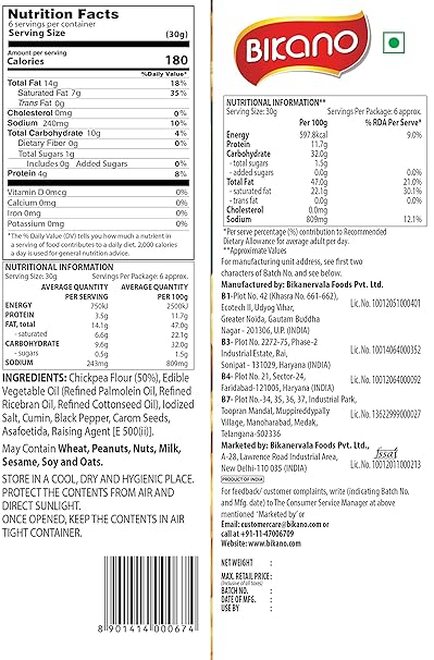 BIKANO Ghanthiya 200G is a traditional Indian snack made from premium quality gram flour (besan). Known for its soft, thick strands and lightly spiced flavor, Ghanthiya is a popular savory treat from Gujarat. It's perfect for pairing with tea or enjoying on its own as a light and satisfying snack.