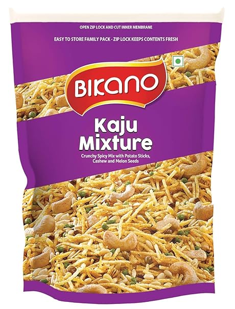 BIKANO Kaju Mixture 200G is a rich and crunchy Indian snack blend made with high-quality ingredients including crispy fried cashew nuts (kaju), spiced sev, lentils, and other savory tidbits. It's a perfect mix of textures and flavors—salty, spicy, and nutty—ideal for festive occasions or everyday snacking.