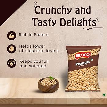 BIKANO Peanuts 200G offers a crunchy and savory snack made from premium-quality roasted peanuts, lightly seasoned with salt and traditional spices. Perfect for snacking anytime, these peanuts are a source of protein and energy, ideal for both casual munching and party platters.