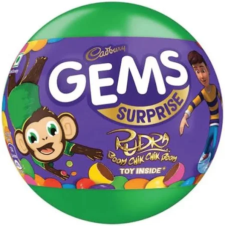 Cadbury Gems Surprise 15.8g combines colorful candy-coated chocolate buttons with a small toy inside the pack, creating a fun and exciting treat for kids. It delivers the classic creamy Cadbury milk chocolate taste with an element of play.