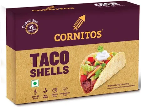 CORNITOS Taco Shells (80g) are crisp, ready-to-use taco shells made from premium-quality corn, perfect for preparing Mexican-style tacos at home. Just fill with your favorite veggies, beans, salsa, or meat to enjoy a delicious and crunchy snack or meal.
