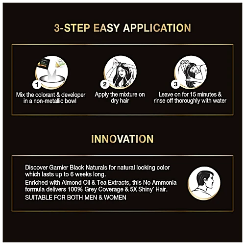 Garnier Color Naturals Crème Hair Colour in the shade Natural Brown Black (20ml) is an ammonia-free hair color enriched with nourishing oils. It provides 100% grey coverage and leaves hair soft, shiny, and naturally colored. The shade is ideal for those seeking a rich, dark brown tone with black undertones.