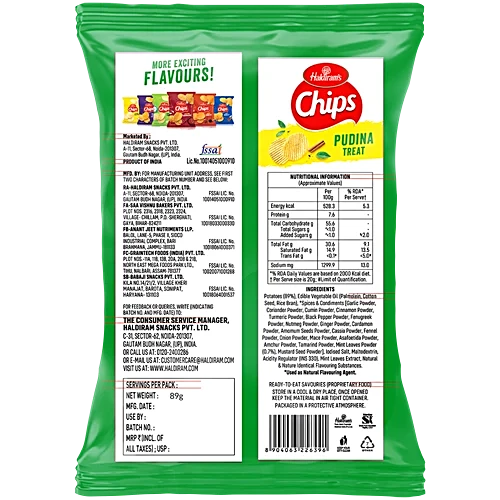 Haldiram’s Pudina Treat is a crispy, crunchy snack infused with the refreshing and tangy flavor of pudina (mint). Made from high-quality ingredients and seasoned with aromatic spices and herbs, this namkeen delivers a burst of minty freshness in every bite. Ideal for tea-time munching or on-the-go snacking, it is a delicious treat for all age groups.