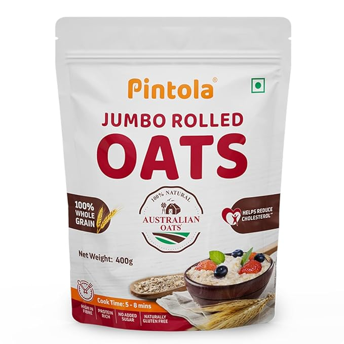 Pintola Jumbo Oats 400g are made from high-quality oats, rolled to a jumbo size to maintain their natural texture and nutrients. These oats are rich in fiber, protein, and essential vitamins, offering a hearty and nutritious start to your day. Perfect for making a wholesome porridge, adding to smoothies, or using in baking, Pintola Jumbo Oats are versatile and an excellent addition to a healthy diet. Ideal for those who seek a filling, energizing, and satisfying meal.