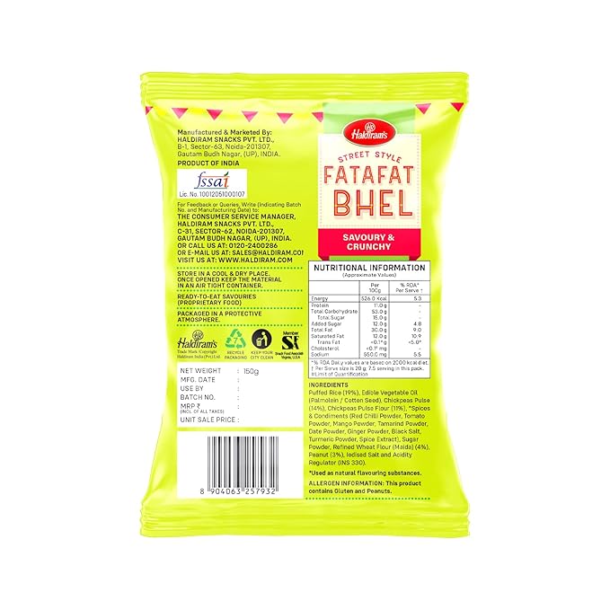 HD Street Style Fatafat Bhel 150 G is a quick and flavorful snack mix inspired by Indian street food. Made with puffed rice, sev, peanuts, and tangy spices, this ready-to-eat bhel delivers an instant burst of taste. Perfect for tea-time munching or quick hunger fixes.