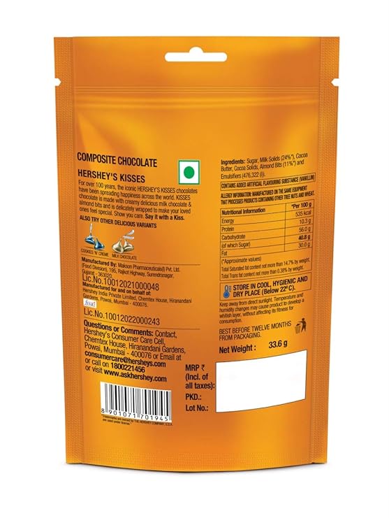 HERSHEY’S Almond Kisses are bite-sized milk chocolate treats with whole roasted almonds, wrapped in iconic silver foils. Each piece offers a perfect blend of creamy chocolate and crunchy almonds, making it a delightful snack or gift option.