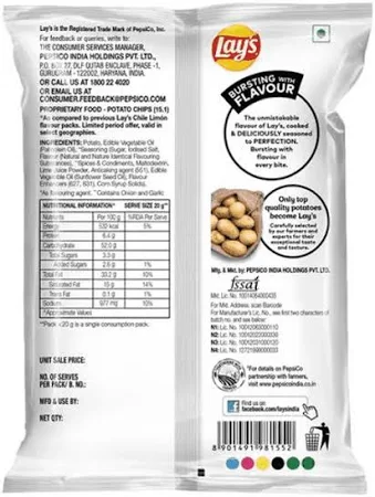 Lay's Chile Limón 48g pack delivers a zesty and spicy flavor punch with every crisp bite. Infused with tangy lime and a bold kick of chili, these chips offer a perfect balance of heat and citrus, making them an exciting snack for spice lovers.