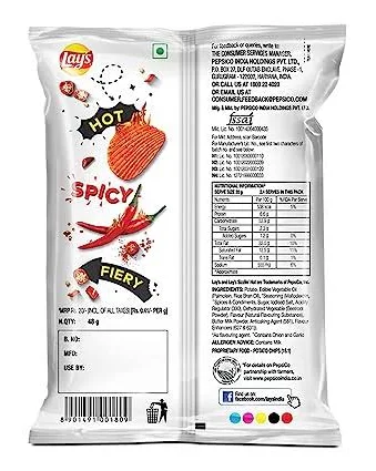 Lay's Sizzlin Hot 48g is a fiery snack that packs a punch in every crisp bite. Prepared from high-quality potatoes and seasoned with an energetic blend of chili and other bold spices, this variant offers an intense heat and flavor experience tailored for spice enthusiasts.