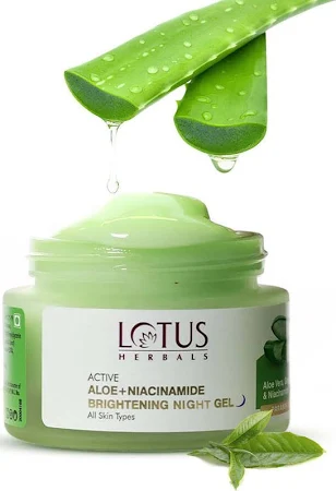 Lotus Herbals Acti-Aloe + Niacinamide Bright Night Gel is a revitalizing overnight skincare solution designed to hydrate, repair, and brighten the skin while you sleep. Enriched with the calming properties of Aloe Vera and the skin-brightening power of Niacinamide, this gel helps reduce dark spots, uneven skin tone, and signs of fatigue. Its lightweight, non-sticky formula penetrates deeply to support overnight skin regeneration for a refreshed, radiant glow by morning.