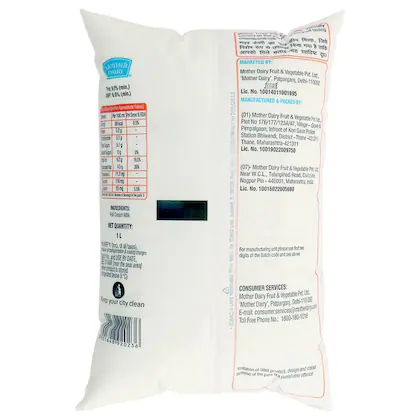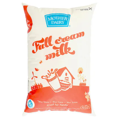 Mother Dairy Full Cream Milk 1L is rich, wholesome milk with a high fat content, ideal for preparing sweets, curd, ghee, and for daily consumption. It offers a creamy texture and is packed with essential nutrients like protein, calcium, and vitamins, making it suitable for growing children and adults alike.