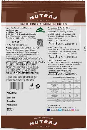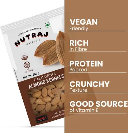 Nutraj California Almond Kernels are premium-quality almonds sourced from the best farms in California. These almonds are rich in essential nutrients such as protein, fiber, healthy fats, and vitamin E. They are naturally gluten-free, cholesterol-free, and free from added preservatives. Ideal for snacking, baking, or adding to your daily diet, these almonds offer a crunchy texture and a delightful taste.