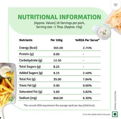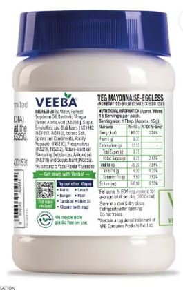 Veeba Veg Egls Mayonnaise is a creamy and rich vegetarian mayonnaise made from high-quality ingredients, providing a smooth texture and delicious taste. Perfect for enhancing sandwiches, wraps, salads, and snacks, this eggless mayonnaise is ideal for those who prefer plant-based alternatives. It contains no artificial preservatives or colors, ensuring a fresh, wholesome taste in every spoonful.