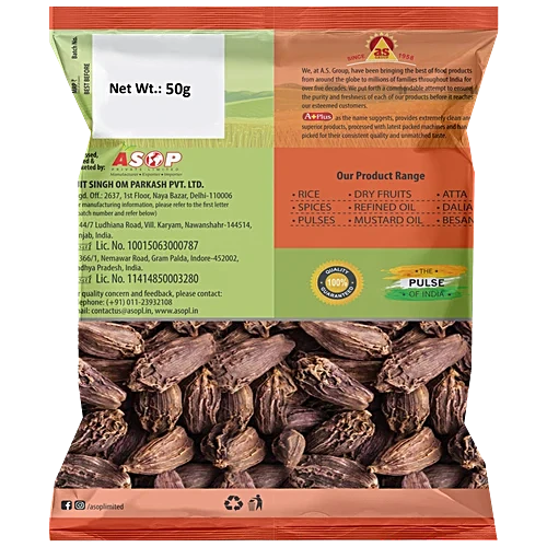 Premium whole black cardamom pods known for their smoky, aromatic flavor—perfect for richly-flavored Indian dishes like biryani, pulao, and curries. Carefully sourced and handpicked for freshness and quality, this nutrient-rich spice adds both depth and well-being to your culinary creations.