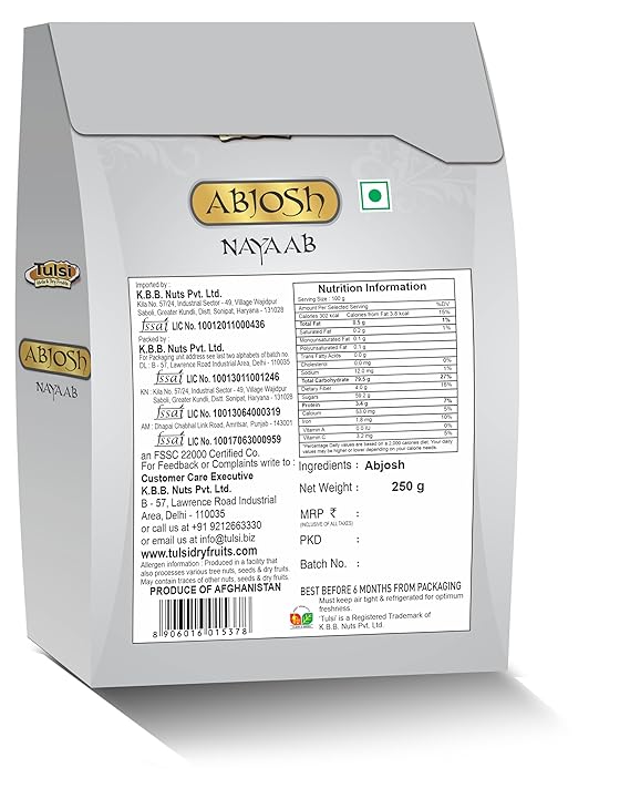 The above description reflects commonly documented attributes of Tulsi’s Munakka Nayaab (250 g) as indicated in product titles such as “farm-sourced” or “Nayaab.” However, actual packaging, ingredient lists, and nutritional details may vary slightly due to manufacturing batches or retail sourcing. Please refer to the physical product label for the most accurate and up-to-date information—including storage instructions, ingredient specifics, FSSAI certification, and any allergen advisories.