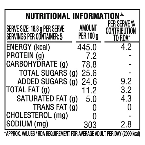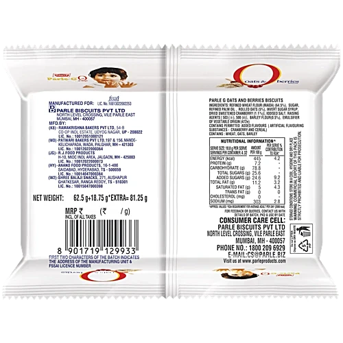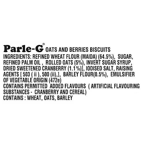 These biscuits reinvent the iconic Parle-G by including wholesome oats and dried berries—adding a soft, nutty flavor and chewy texture to the familiar biscuit experience.With a good protein content, these biscuits provide a quick and satisfying energy boost. They’re ideal for fighting hunger gaps—whether for breakfast, an afternoon snack, or any time in between. At 81.25 g, it’s a compact, single-serve packet—perfectly sized for on-the-go munching.