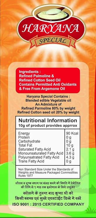 Made from pure cow's milk and extracted using traditional methods, this Haryana Fresh Ghee delivers a rich, nutty aroma and creamy texture—perfectly reminiscent of homemade ghee. Ideal for a wide range of cooking needs—be it frying, baking, preparing parathas, pulao, or sweets—its high smoke point ensures excellent performance without burning. Packed with essential fat-soluble vitamins (A, D & E), this ghee offers nutritional value alongside flavor. Available in hygienic Tetra Pak packaging, this 500 ml format provides both convenience and preservation—blending traditional taste with modern usability.