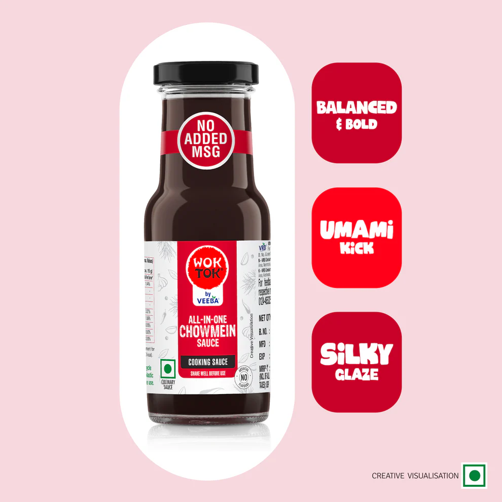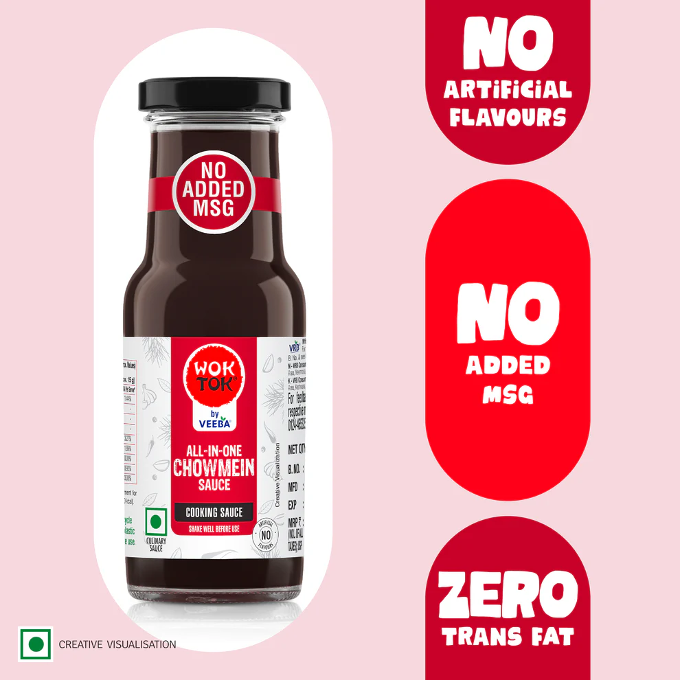 Wok Tok All-in-One Chowmein Sauce is your secret to whipping up delicious Chowmein or Hakka noodles in no time. This versatile sauce has everything you need! With a perfectly balanced blend of Red Chilli Sauce, Green Chilli Sauce, Soya Sauce, and Vinegar, it delivers a harmonious mix of spicy, tangy, and savoury flavours. Infused with garlic and ginger, Wok Tok All-in-One Chowmein Sauce adds a fragrant aroma that enhances every bite, making your noodles irresistibly tasty. Whether you’re cooking for a quick lunch or a family dinner, this sauce makes it effortless to bring the taste of chowmein you love, straight to your table.