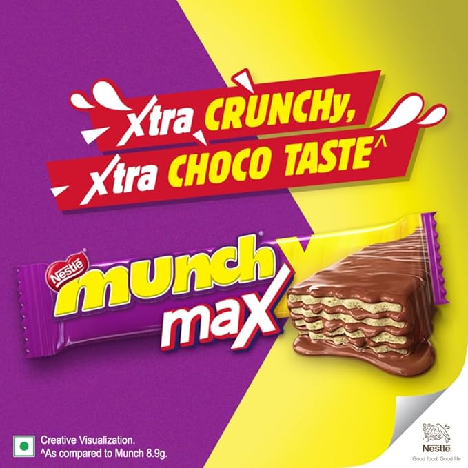 Nestle Munch brings you a wafer-based crunchilicious bar, resulting in an explosive crunch. The crunchy wafer and delicious choco coating give Munch a sweet and delicious taste so you can savour every bite. Enjoy this wafer-based crunchilicious Munch! So, break your way to mouth-watering Munch chocolate recipes or enjoy the Munch bar as it is.