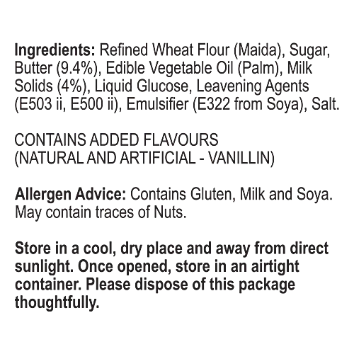 Store in a cool, dry place away from direct sunlight and moisture to maintain freshness. Contains butter, wheat, and may contain traces of dairy, nuts, and soy. Not suitable for individuals with allergies to these ingredients. Keep out of reach of children under the age of 3 to prevent choking hazards. Product appearance and taste may vary slightly depending on batch or packaging design. For the best quality, consume before the expiry date printed on the packaging.