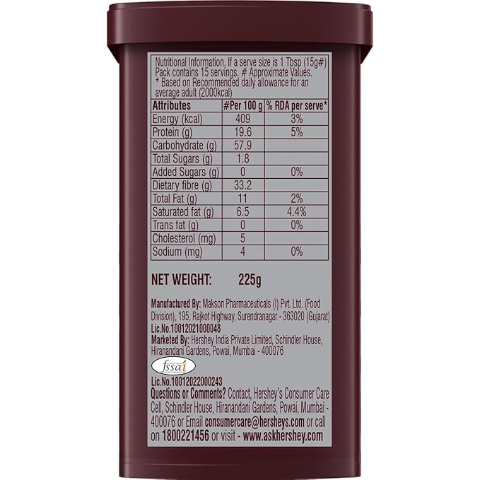 Hershey's Cocoa Natural Unsweetened is a premium cocoa powder made from 100% pure cocoa beans. With its rich, intense flavor and smooth texture, it’s perfect for baking, cooking, or adding to your favorite beverages. This versatile cocoa powder has no added sugars or artificial ingredients, allowing you to create the ideal sweetened cocoa or chocolate recipes according to your personal taste. Whether you're making cakes, brownies, hot cocoa, or any other delightful treat, Hershey's Natural Unsweetened Cocoa brings the perfect chocolatey richness to every dish. This 225g pack offers plenty of cocoa for all your baking needs.