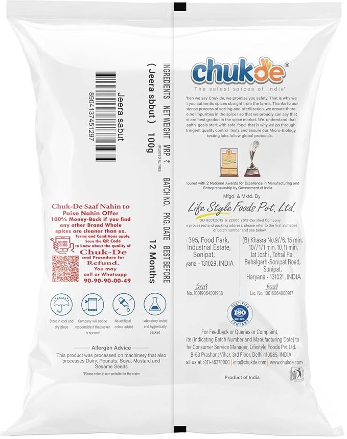 This is the seasonal herbs and spices used to add taste in your food. The product is pure and Vegetarian. Store in a cool and dry place. 12 Months Shelf Life. Chuk-De Spices not adds Flavor to the food but also adds spices to your life by ensuring that the best Product reaches your Kitchens direct from Mother Nature's Farms... Chukde-de Spice counter is the perfect destination for Pure, natural & fresh Spices with natural flavor & aroma.