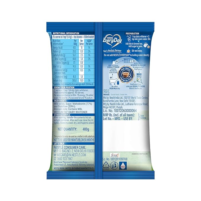 Storage Instructions: Store in a cool, dry place. After opening, seal tightly and use within the recommended time frame. Shelf Life: Best consumed before the expiry date printed on the packaging. Not a Lactose-Free Product: Contains milk solids and is not suitable for individuals with lactose intolerance. Allergen Information: Contains milk and may not be suitable for individuals with a milk allergy. Consumption: Add as per your taste to tea, coffee, or other beverages. Nutritional Information: Nutritional values may vary slightly depending on the batch. Always refer to the packaging for accurate details.